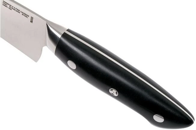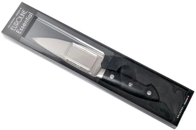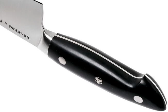 The Bob Kramer by Zwilling Euro Essential chef’s knife, 16 cm is a true all-rounder. With a 16 cm blade and a firm handle the knife feels great in hand. The entire length of the blade has been sharpened. As a result you can use the entire blade. Because of the length and the height of the blade this knife is perfect for cutting vegetables, meat, fish and fruit. But also for chopping herbs and peeling cloves of garlic. This knife is made with only one purpose: giving you excellent cutting properties.