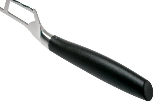 The Böker Core Professional cheese knife 16 cm has three holes in the blade to make sure cheese won’t stick to the surface, a serrated edge with which you easily cut through hard and soft cheeses and a forked tip to serve pieces of cheese. In short, this knife is real all-rounder.