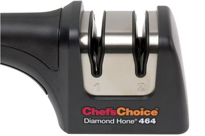 The Chef’s choice Pronto 464 is a compact and effective knife sharpener. This handy sharpener uses diamond-coated grinding wheels. This gives you a good grinding result quick and easy. Thanks to the criss-cross technology, your knife will have a burr-free and razor-sharp edge. As a result you can now cut quickly and effortlessly. It is equipped with a comfortable handle and anti-slip feet for optimum ease of use.