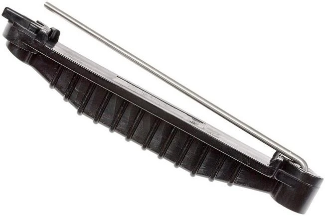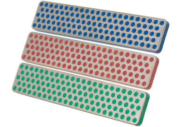The DMT Aligner Easy Edge sharpening system contains all parts you need to quickly sharpen your knife. The heart of the set is comprised of three diamond-coated sharpening stones. The colour in the famous DMT round pattern shows you which grain size you are dealing with. The set also contains a conical file which can be used to sharpen serrated knives.