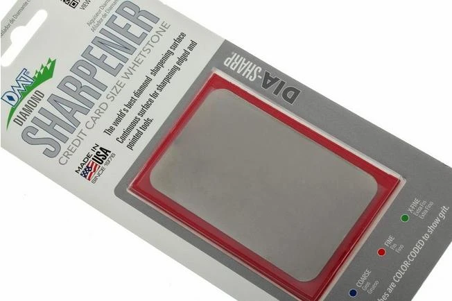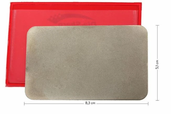 This compact sharpening stone with diamond sharpening surface can even be carried with you in your wallet because of the creditcard-size. This makes the stone ideal for everyone who wants to use a razor sharp knife at all times. These stones do not have the well-known holes pattern of DMT. This has the advantage that, for example, small chisels or other small objects can be sharpened without them getting stuck in the holes.