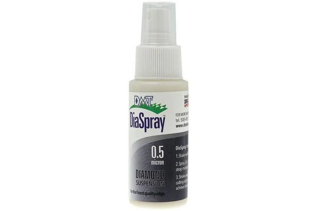 The DMT DiaSpray is a liquid which has diamond particles added to it. The spray is used on a strop to make stropping on your blade even more effective. You can spray on leather, balsa wood, maple wood or even on cardboard and you can create a very sharp edge for your knife. When you are looking for the perfect mirror-edge the DiaSpray is the way to go.