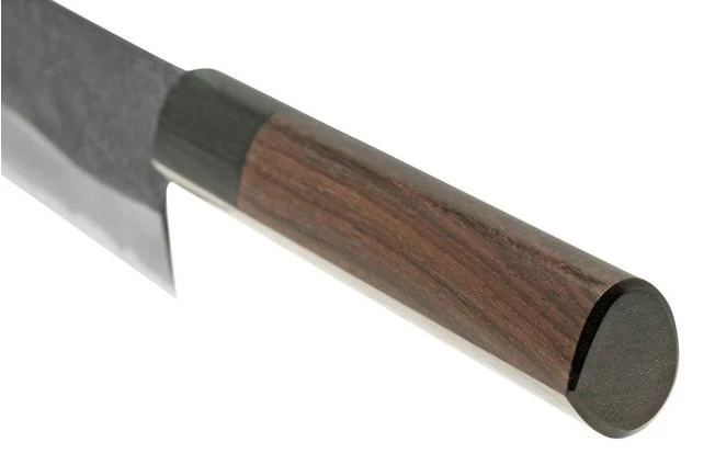 The Eden Kanso Aogami santoku is a versatile Asian kitchen knife to cut meat, fish, vegetables and fish. A great alternative for the chef’s knife, lighter and easy to use. Cutting, crushing and scooping. It is all possible with the multi-functional santoku.