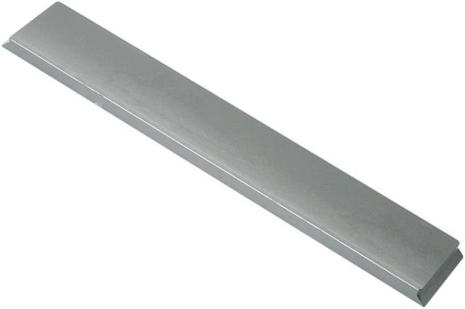 You attach polishing tape on this Edge Pro hard anodized polish tape blank. The hard steel sheet is enhanced with an anodized finish. This means it is enhanced with an oxidized coating. This prevents wear and tear. You add the sheet with the tape to the Edge Pro sharpening system. With it you can perfectly polish the edge of your knife.