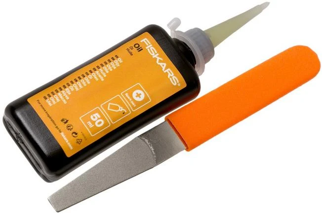 This Fiskars maintenance set is a practical addition to your Fiskars garden tools. This set is comprised of a diamond-coated file, oil and a maintenance manual to make sure your tools stay in great shape. With the diamond-coated file your tools stay sharp. You use the oil to lubricate the hinges of your garden tools.