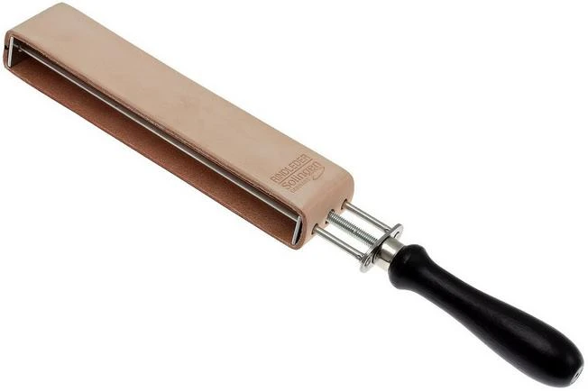 The double-sided Herold Solingen adjustable leather strop can be used for carbon steel knives. The adjustable system allows you to easily adjust the tension on your belt. One side of the belt is just natural where the other side has stropping compound to ease stropping. The material is very fine ‘Russian’ leather.