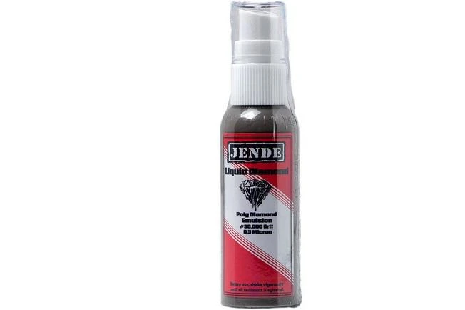This Jende Poly Diamond Emulsion is a top-quality stropping emulsion. You spread this liquid over a fine strop for fine stropping. With it you end up with razor-sharp pocket knives, kitchen knives, razors and wood carving tools. For the true sharpening enthusiast who is looking for the best, but also for the knife enthusiast who loves quick and easy stropping.