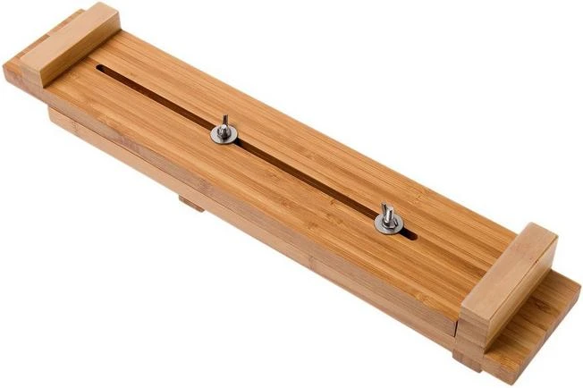 This Kramer by Zwilling Sink Bridge is perfect when you are using whetstones because, let’t be honest, using these can be a little messy. When you use the sink bridge this will no longer be an issue. You place it over the sink and sharpen over the water. As such your counter tops or work station will remain neat and tidy. Would you rather not sharpen over the sink but on your counter top? No problem at all! After all, the base of the Sink Bridge has been enhanced with non-slip feet. These make sure the bridge won’t move. The Sink Bridge is made from bamboo wood. This material can handle water quite well, but we do recommend you rinse it off and dry it when you are done using it.