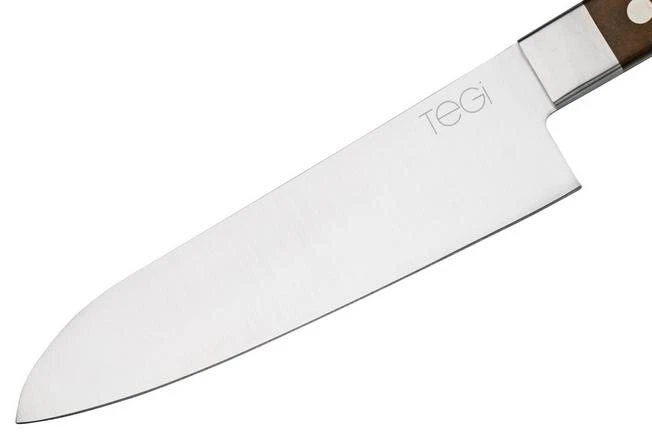 The Maserin TEGI santoku brown is a stylish and lightweight kitchen knife. The santoku has its origins as a traditional Japanese kitchen knife with a distinctive blade. The santoku is the Japanese version of the chef’s knife. The high blade is perfect for chopping and scooping up vegetables, meat, fish, onion, garlic and, of course, different types of herbs.