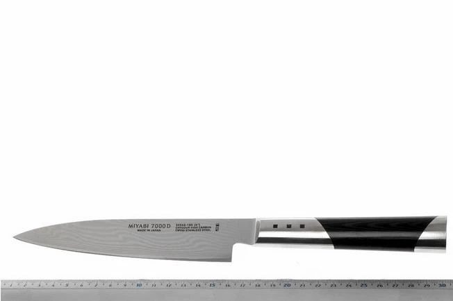 The Miyabi by Zwilling chutoh from the 7000D collection is a utility knife that combines excellent cutting properties with irresistible design. Only the very best materials have been used in the creation of this beautiful knife. The knife has been sharpened in three phases according to the traditional Japanese methods, which results in a sharpening angle of no more than ten degrees. Unbeatably sharp!