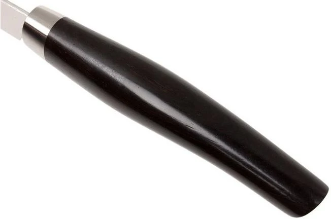 African dark brown, nearly black wood. Grenadilla is known for its extreme hardness, durability and weight. The combination of the dark handle and the shiny, silver-grey blade makes this Nesmuk knife suitable for any decor. The handle has perfect ergonomics, so your hands won’t get fatigued.