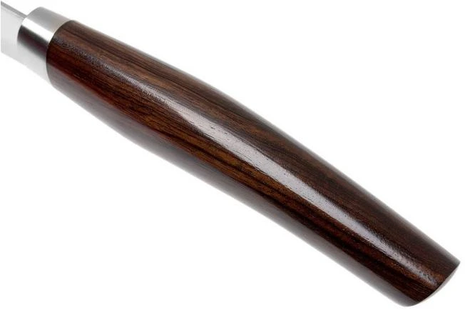 African dark brown, nearly black wood. Grenadilla is known for its extreme hardness, durability and weight. The combination of the dark handle and the shiny, silver-grey blade makes this Nesmuk knife suitable for any decor. The handle has perfect ergonomics, so your hands won’t get fatigued.