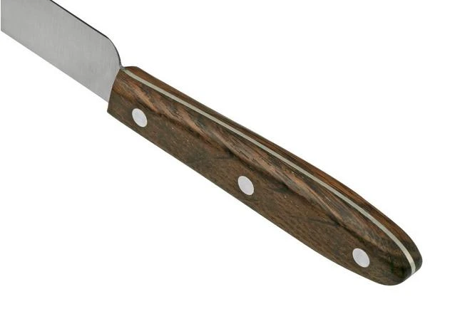 The Otter table knife smoked oak is perfect for spreading butter, jam and other tasty spreads on your sandwich. The rounded tip of the blade makes smooth and even spreading of sandwich spreads very easy. With a blade length of 12.5 cm, this knife is also perfect for scraping out empty jars. The knife is razor-sharp and therefore also suitable for cutting sausages, cheese and soft bread.