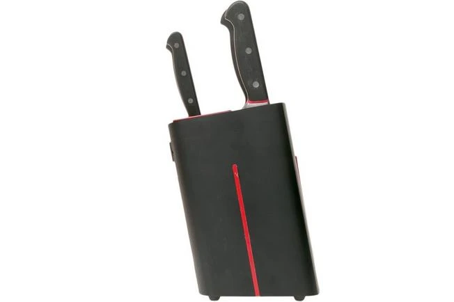 This Richardson Sheffield Velocity 5-piece knife set including knife block is comprised of a paring knife, utility knife, chef’s knife, carving knife and a bread knife. This knife set is an excellent example of the unique and innovative design Richardson sheffield is famous for. The block is namely enhanced with an integrated knife sharpener.