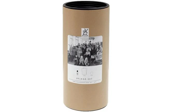 A carbon steel kitchen knife needs some attention. That is why Robert Herder provides this special maintenance set for carbon steel knives. The set contains Ballistol oil for oiling the blade. This cleans the blade and prevents corrosion. It also contains Robert Herder’s Holzpflege l. This is a macadamia oil-based maintenance oil for the wooden handles of your knives. In addition, you will find a polishing agent in the packaging for polishing the blade. This can also be used when stropping your knife.
