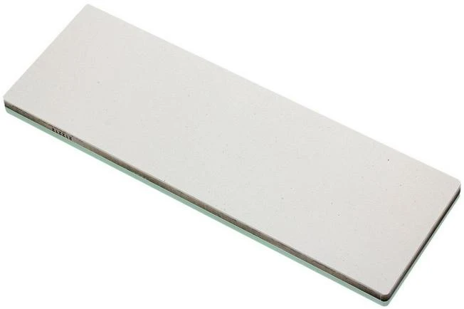 You use this Shapton Glass Stone Grain 2000 to sharpen your already sharp knives and to make sure they stay sharp. The sharpening stone sharpens quickly and evenly. Which is exactly what we’re looking for from a high-quality sharpening stone. Contrary to what you might expect from the name, the glass doesn’t do the sharpening. You sharpen on a high-quality Japanese whetstone. A layer of tempered glass is attached to this to prevent bending. This stone is suitable for sharpening almost all types of knives. From outdoor knives to kitchen knives, from pocket knives to chisels. These stones really come into their own with hard steels in particular. Think of the modern powder steel types that you will find with pocket knives in the high segment.
