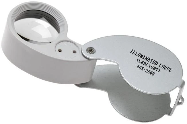 The TSPROF 40×25 mm pocket magnifier with LED light is a practical pocket-size magnifier. With this microscope you can determine which side of the edge needs to be sharpened. You can also check if, after sharpening your knife, you are left with the best results. The 40x magnification is large enough to check out all imperfections on your edge. Because of the LED light you will always see enough. The magnifier comes with batteries and a small storage box.