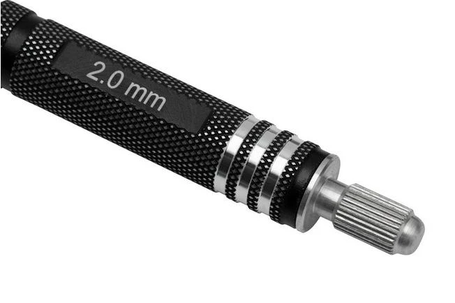 The TSPROF Hex Screwdriver 2 mm is a solid Allen key with a size of 2 mm. The handle is made from aluminium and has a diameter of 1.8 cm. You adjust the total length of the screwdrivers by loosening the screw in the handle, pushing the rod down and securing the screw again. The screwdriver is adjustable from a minimum length of 10 cm to a maximum length of 19.5 cm.
