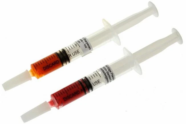 You use these 10 and 14 micron Wicked Edge diamond pastes for that additional ‘bite’ on your strop. With each syringe, you can apply paste to your strop eight to nine times with which you should be able to do 30 to 40 strokes. So, in total you can use it 240 to 360 times.
