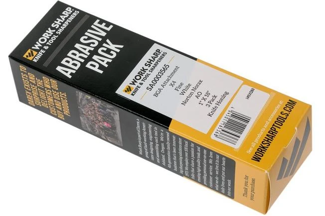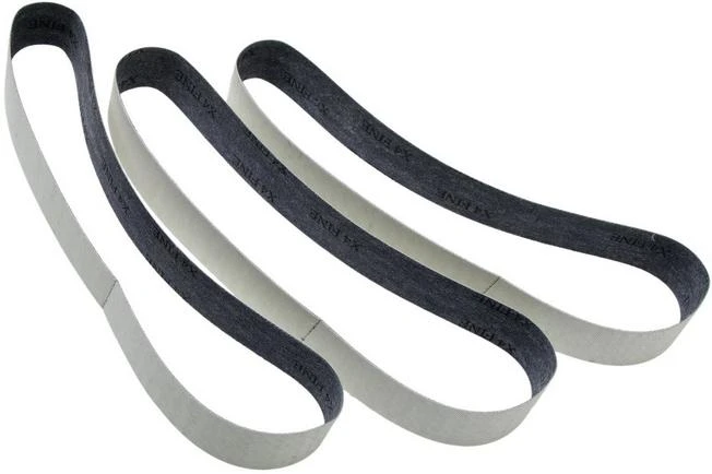 The Work Sharp Blade Grinding Attachment sharpening belts set, X4 fine, SA0003565 is a set of three fine sharpening belts for the Work Sharp Ken Onion Blade Grinding Attachment. These solid sharpening belts, with a fine grain size, are perfect when sharpening sharp knives, or when keeping your knives sharp. Do you wish to sharpen your blunt knives? If so you should check out the coarser Work Sharp sharpening belts. This sharpening belt is similar to a J3000 grit Japanese sharpening stone.