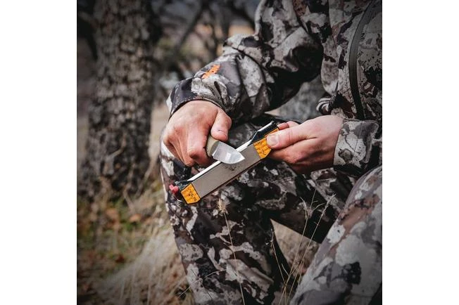 With the WorkSharp Guided Field Sharpener you always carry everything you need in order to sharpen your knife. Where you would often choose to take a single sharpening stone or steel with you so you do not have to carry too much space and weight, Work Sharp has made a sharpening tool that is smaller than many other sharpening stones while it still stores 5 sharpening phases and also helps in finding the proper sharpening.