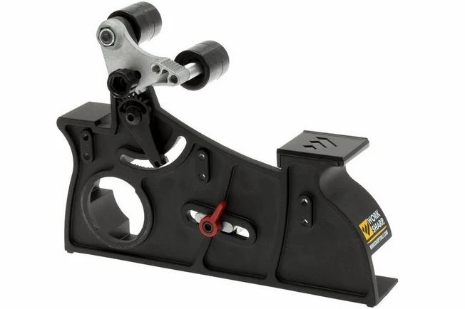 With this expansion for the WorkSharp Multi Sharpener, Ken Onion Edition you transform your Multi Sharpener into a larger model belt sander. Particularly ‘heavy sharpeners’ will be able to appreciate the larger grinding belts. Also the larger freedom of sharpening makes that everyone can achieve exactly the desired result. The sharpening angle is infinitely adjustable between 10 and 35 degrees. The indication can be read as accurate as 1 degree. The horizontal plateau on the grinding attachment helps as a reference in order to maintain your knife in a proper horizontal position. You have a perfect view on what and how you are sharpening. The Multi Sharpener with the Blade Grinding Attachment distinguishes itself from a ‘normal’ belt sander because of the well adjustable speed of the grinding belt. You prevent overheating of the steel and you can perfectly dose the sharpening speed.