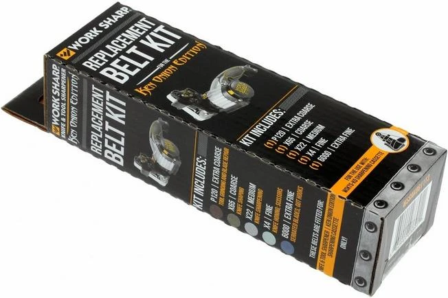 This Work Sharp replacement set consists of five sharpening belts for the Work Sharp Multi Sharpener Ken Onion Edition. This set comes standard with the sharpening belts which are included in the sharpening machine. From a very coarse grit to a very fine grit and in between. We list them below: