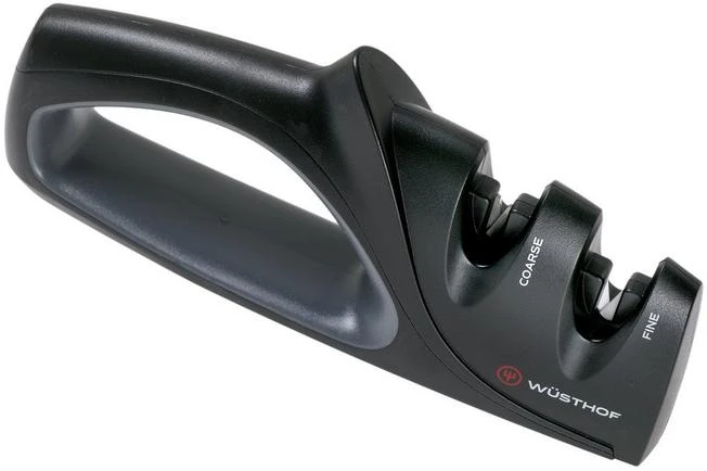 This Wüsthof 2-stage knife sharpener is great when sharpening Wüsthof kitchen knives. It has a fixed sharpening angle of 17 degrees per side, 34 degrees in total. This sharpening angle is great for all kitchen knives that need to be sharp, but also need to stay sharp.