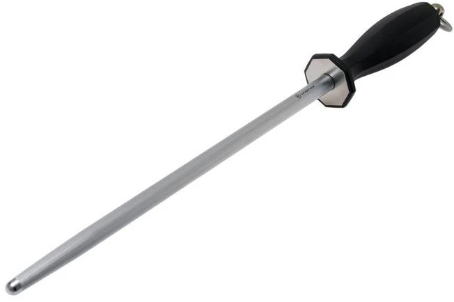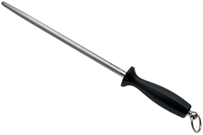 This Wüsthof honing steel, 32 cm is the perfect tool for quickly sharpening your kitchen knives before use. The handle has a hexagonal shape. This provides you with enough grip, but it also ensures that the honing steel won’t roll of the table as you put it down. This honing steel is perfect for kitchen knives that are up to 32 cm long. Before using your knife, drag it along the honing steel a few times and flatten out the burrs that appeared during previous use. Please note: a honing steel doesn’t sharpen your knife, as it doesn’t remove any material. Honing steels are used for minor daily maintenance of your knives.