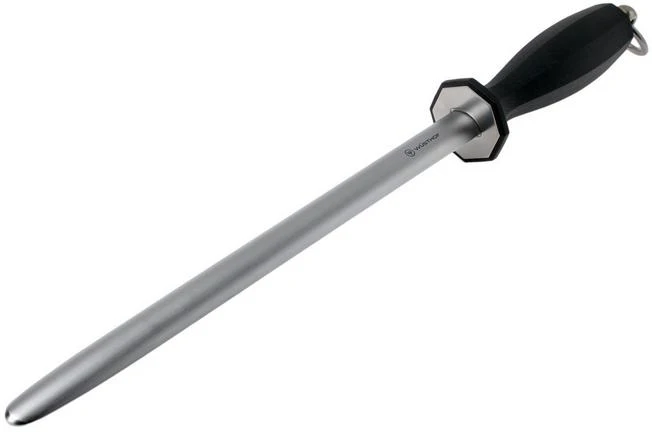 This Wüsthof oval honing steel, 32 cm is the perfect tool for quickly sharpening your kitchen knives before use. The handle has a hexagonal shape. This provides you with enough grip, but it also ensures that the honing steel won’t roll of the table as you put it down. The oval shape of the sharpening steel increases the contact surface and thus the speed with which you sharpen the knife. This honing steel is perfect for kitchen knives that are up to 32 cm long. Before using your knife, drag it along the honing steel a few times and flatten out the burrs that appeared during previous use. Please note: a honing steel doesn’t sharpen your knife, as it doesn’t remove any material. Honing steels are used for minor daily maintenance of your knives.