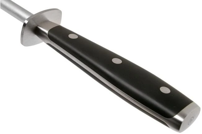 This Wüsthof Classic Ikon honing steel with a length of 26 cm is made from one piece of stainless steel. The steel is attached to the plastic handle with three rivets.