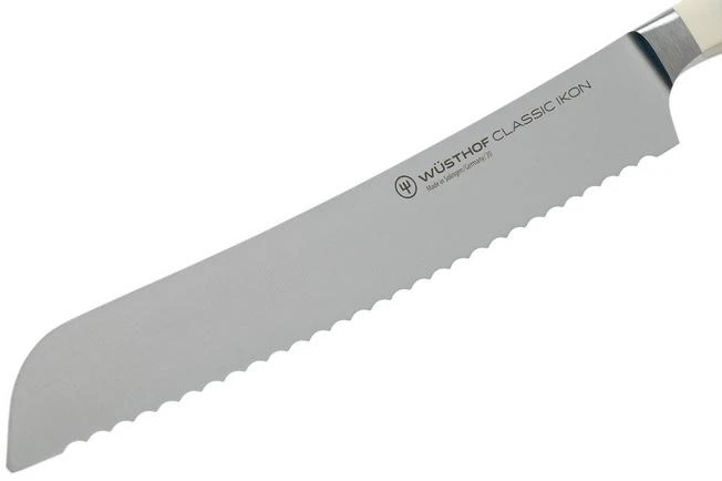 The Wüsthof Classic Ikon White bread knife 23 cm is indispensable when cutting all types of bread. From hard to soft crusts, from soft buns to baguettes. This all-round cream-coloured knife, however, can also cut through delicious pies or a large piece of celeriac.