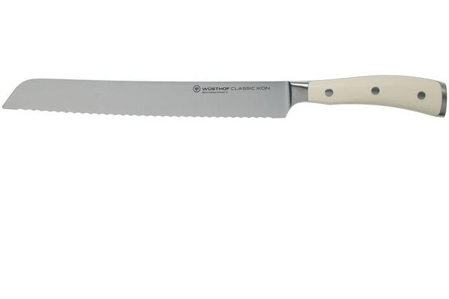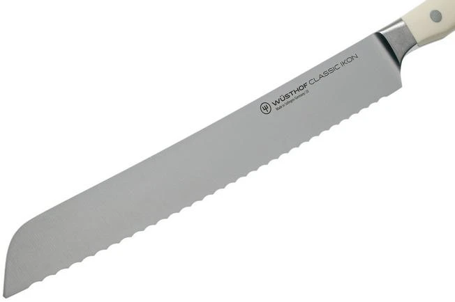 The Wüsthof Classic Ikon White bread knife 23 cm is indispensable when cutting all types of bread. From hard to soft crusts, from soft buns to baguettes. This all-round cream-coloured knife, however, can also cut through delicious pies or a large piece of celeriac.