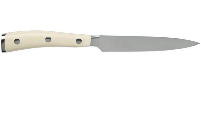 The Wüsthof Classic Ikon white paring knife 12 cm is perfect for small to medium sized tasks in the kitchen. From cutting tomatoes, cucumbers or paprika to cutting a freshly made sandwich. This cream-coloured knife is indispensable in every kitchen.