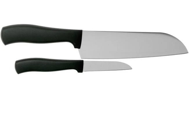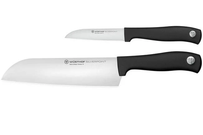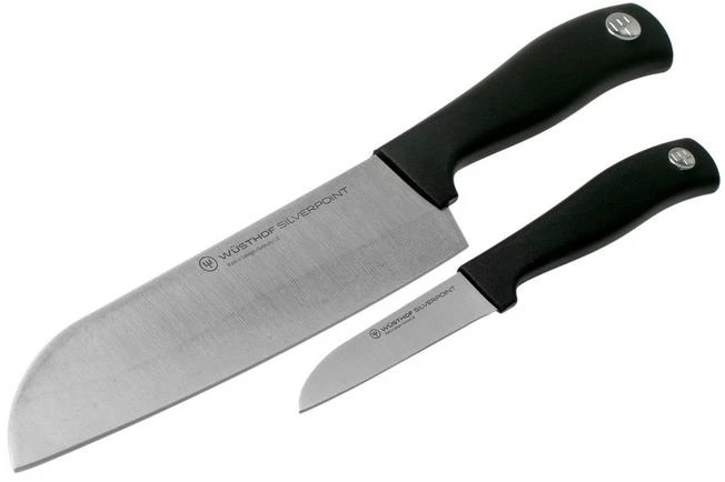 The Wüsthof Silverpoint 2-piece knife set is comprised of a Santoku and a small peeling knife. As such you will always have the right knife close during the smaller and bigger tasks.