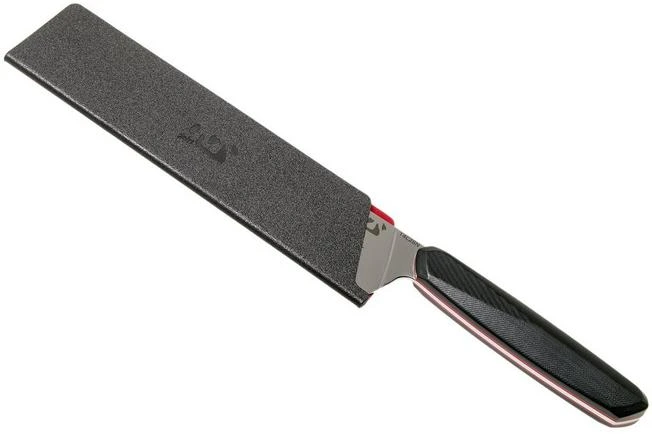 The Xin Cutlery XinCore X124 chef’s knife is a modern and graceful chef’s knife. Anyone who claims modern art cannot be functional has never used this chef’s knife before. The long blade is perfect when cutting all types of vegetable, meat and fish. This knife is enhanced with all practical characteristics of a standard chef’s knife, but with a modern and sleek design. The remarkable design comes from the hand of Polish designer and knife maker Ostap Hel. His knives are always somewhat futuristic, but at the same time also remarkably ergonomic and practical.