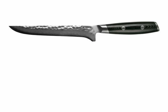 The Yaxell Tsuchimon boning knife is a stylish Japanese kitchen knife for preparing meat. Use it to loosen meat from bones or to remove fat and tendons. The narrow blade is relatively flexible compared to other kitchen knives. This enables you to easily cut as close to bones as possible.