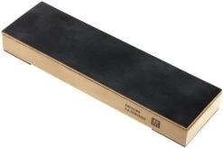 This leather strop produced by J.A. Henckels is perfect if you quickly want to polish your knife. Burrs and other imperfections will be removed and leave you with razor-sharp results. You add the leather – the surface you will strop with – to the hard wood yourself. The bottom of the strop is enhanced with two anti-slip strips to make sure the block stays in place as you use it. Keep in mind that you strop your knife at a 45-degree angle with this strop. It is important that you strop in the right direction. As such you do not end up with a damaged or broken strop. Want to refresh your memory? Visit our sharpening university.